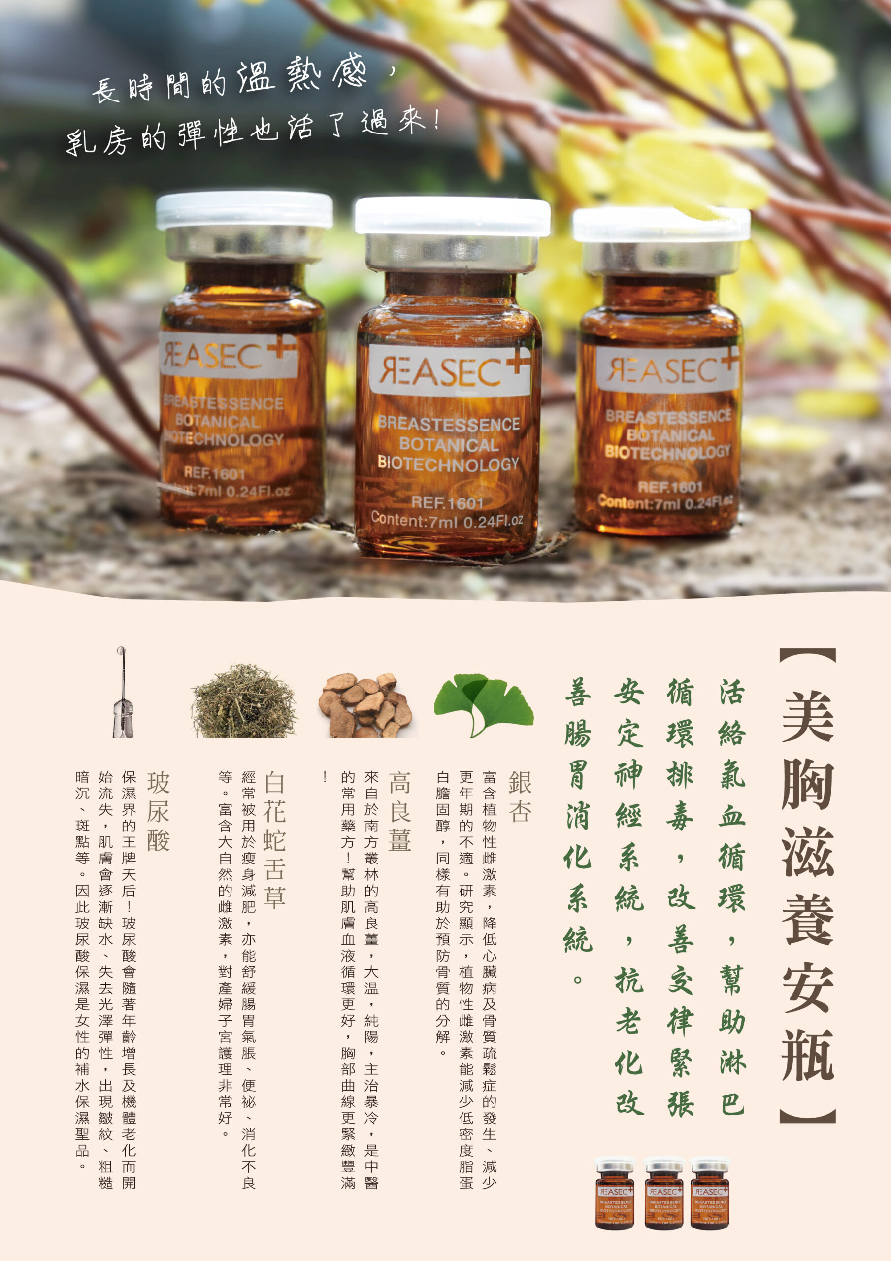 含豐富植物萃取精華,美化胸部肌膚,恢復彈性。